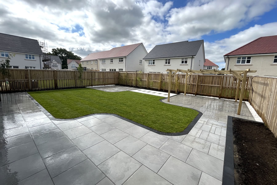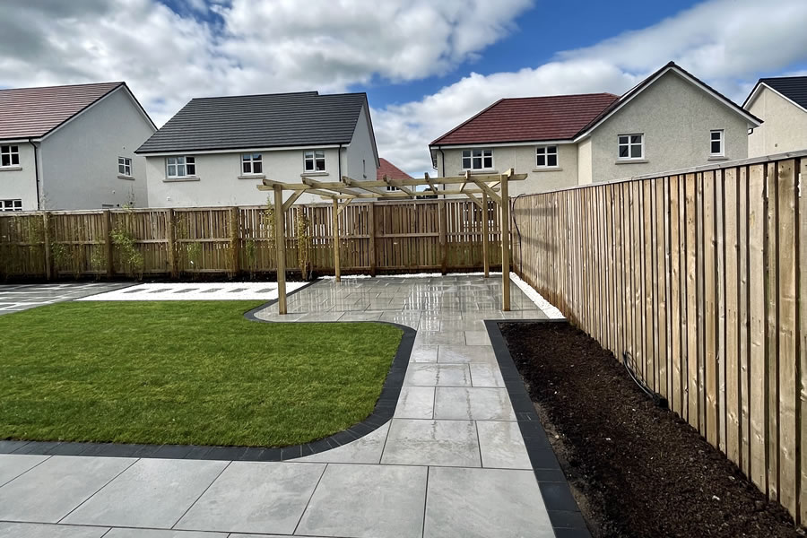 A huge garden transformation for this client’s back garden including a large new patio area with pergola.